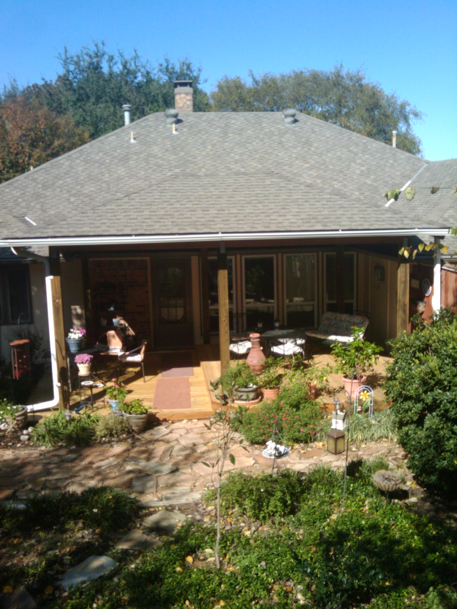 Composition shingled Patio cover. Great for extending your outdoor living space. These are great from shielding your from rain, snow, ice and whatever else mother nature can throw at you.