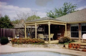 Composition hip roof deck cover. This is a great way to add on to your backyard and gain usable space. We are a premier deck and cover installer in the Dallas area. Feel free to call us for your free bid.