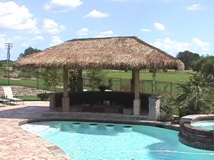 One more shot of our Tiki bar. Notice the swim up bar? Now you don’t even need to get out of the pool and sit at the bar. Bring home the feel of being at a top rate Resort.